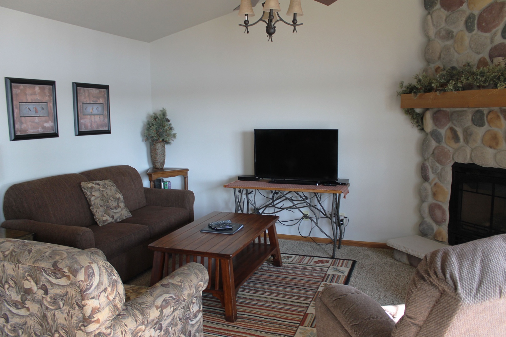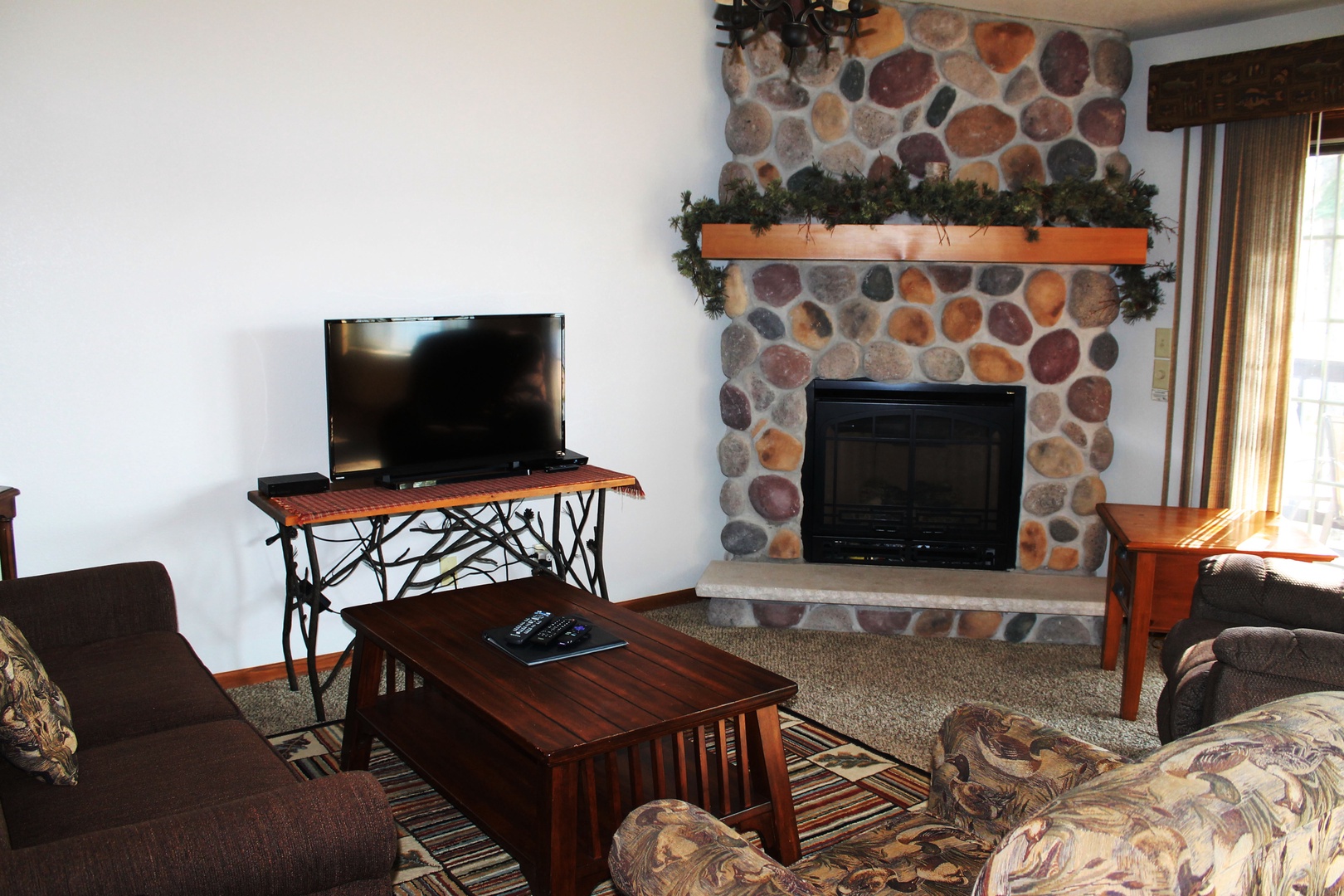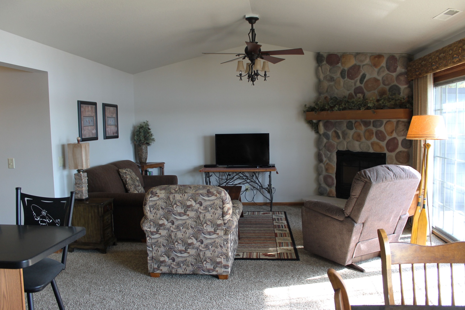 This 1-bedroom unit offers a great view of Duck Lake, located on the second floor overlooking the beach area you have a great view of Duck Lake and the property from the private Balcony. Featuring a full kitchen, 2 full bathrooms, and a master bedroom suite, perfect for a weekend away or a small family. The master bedroom has 1 king bed and attached bathroom, and a queen pull out sofa in the living room. The kitchen has full sized appliances and comes fully equipped. The living room has a gas fireplace to enjoy the view from and attached balcony. Unit shares a charcoal grill in the parking lot side of the building.