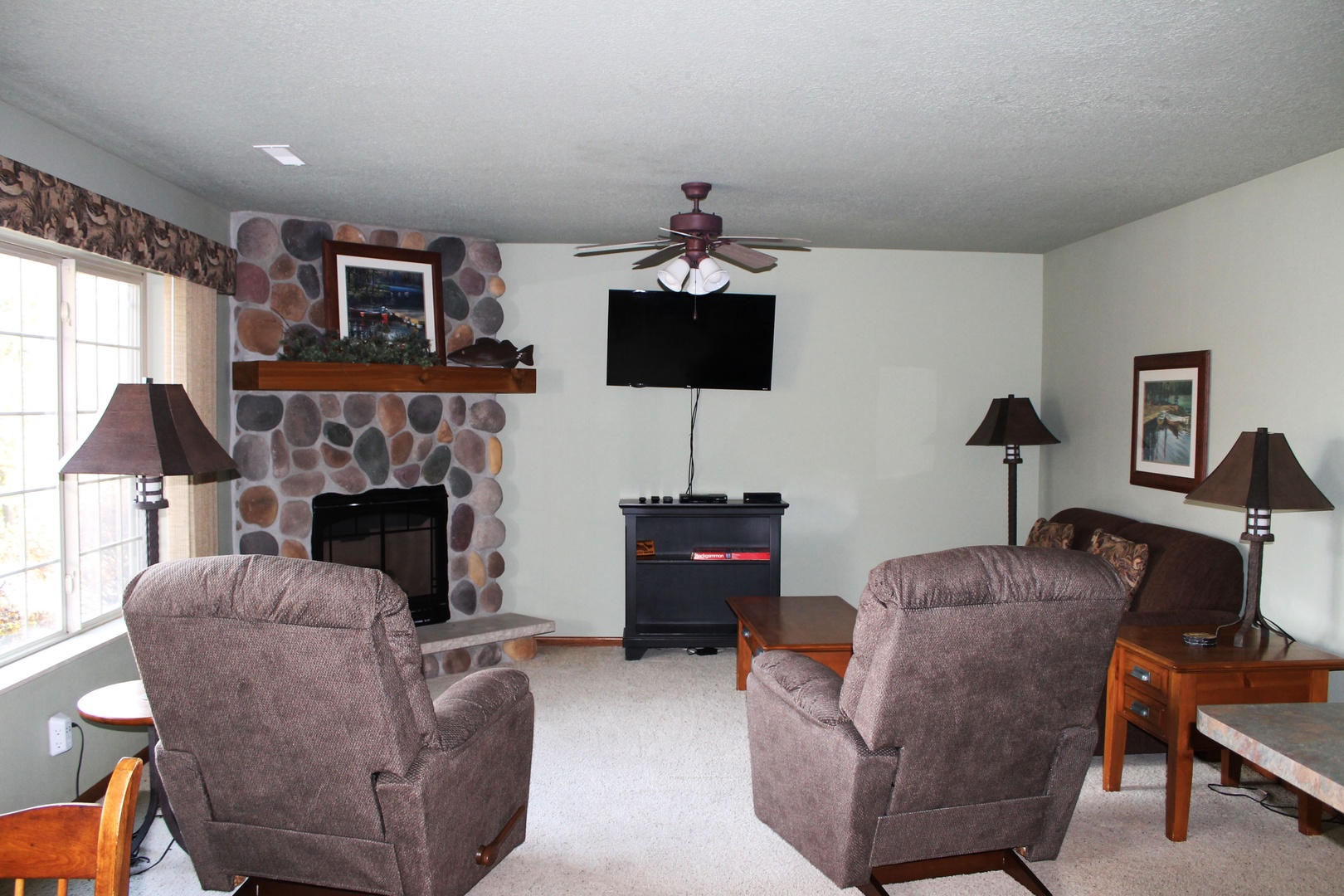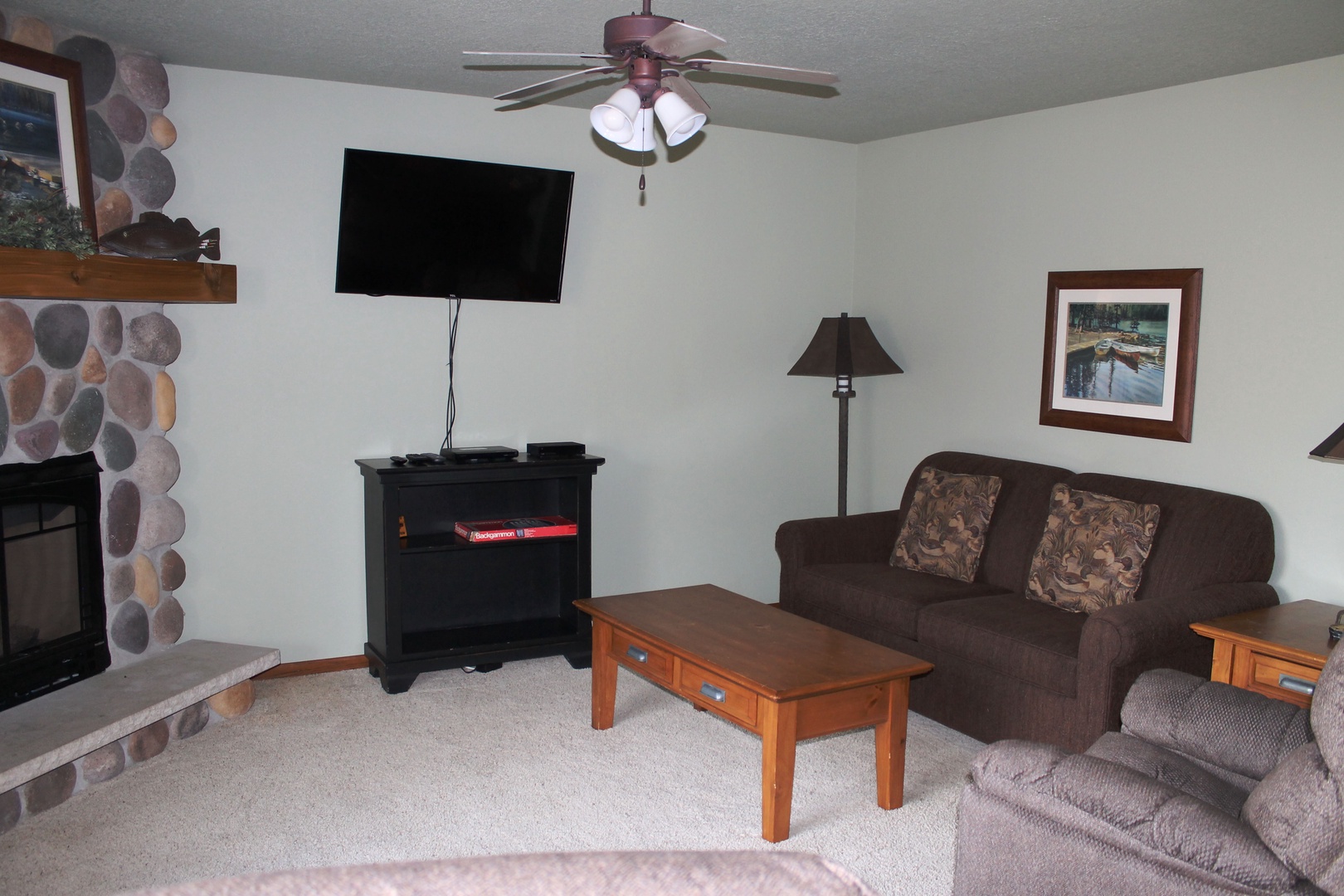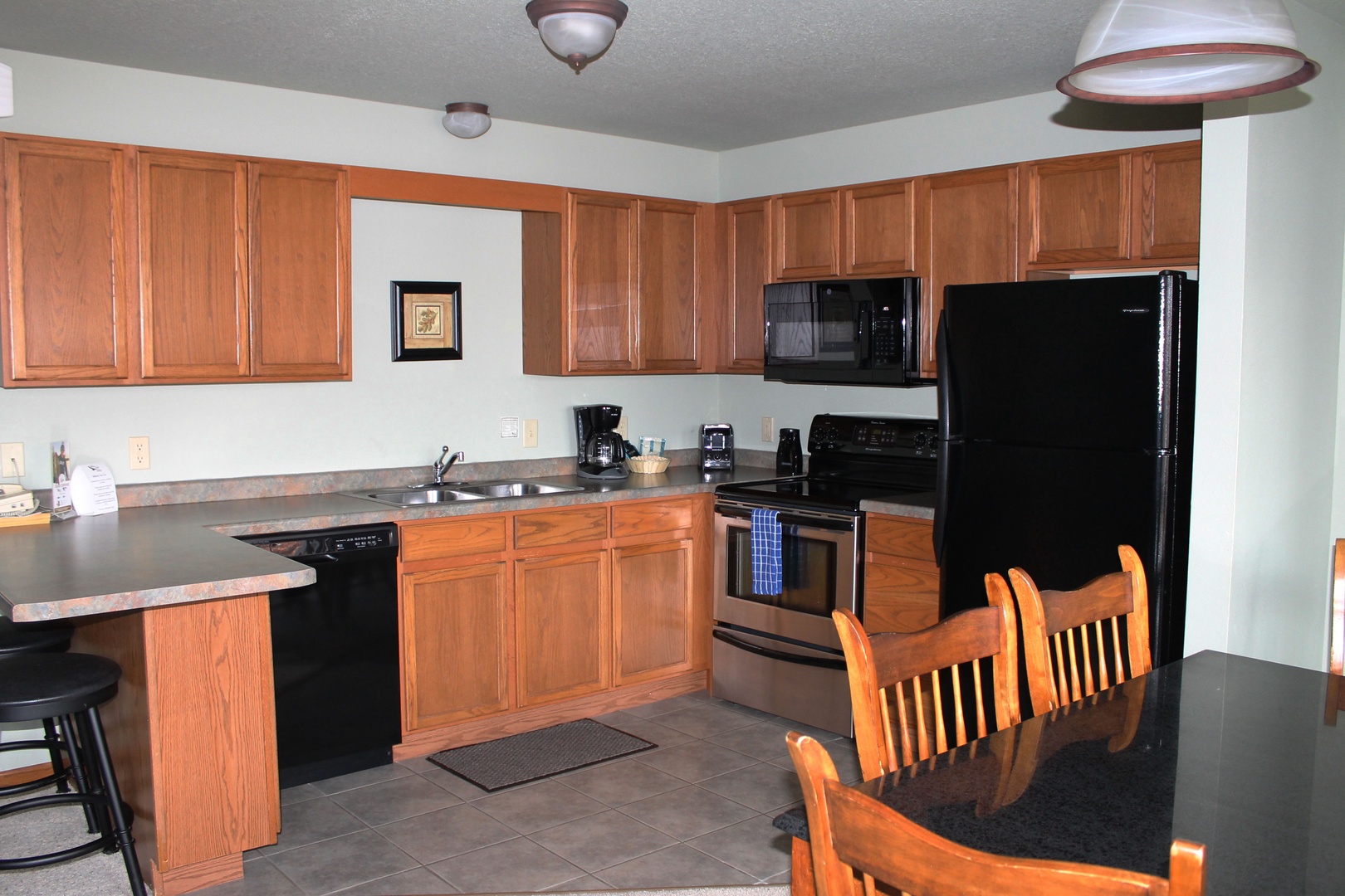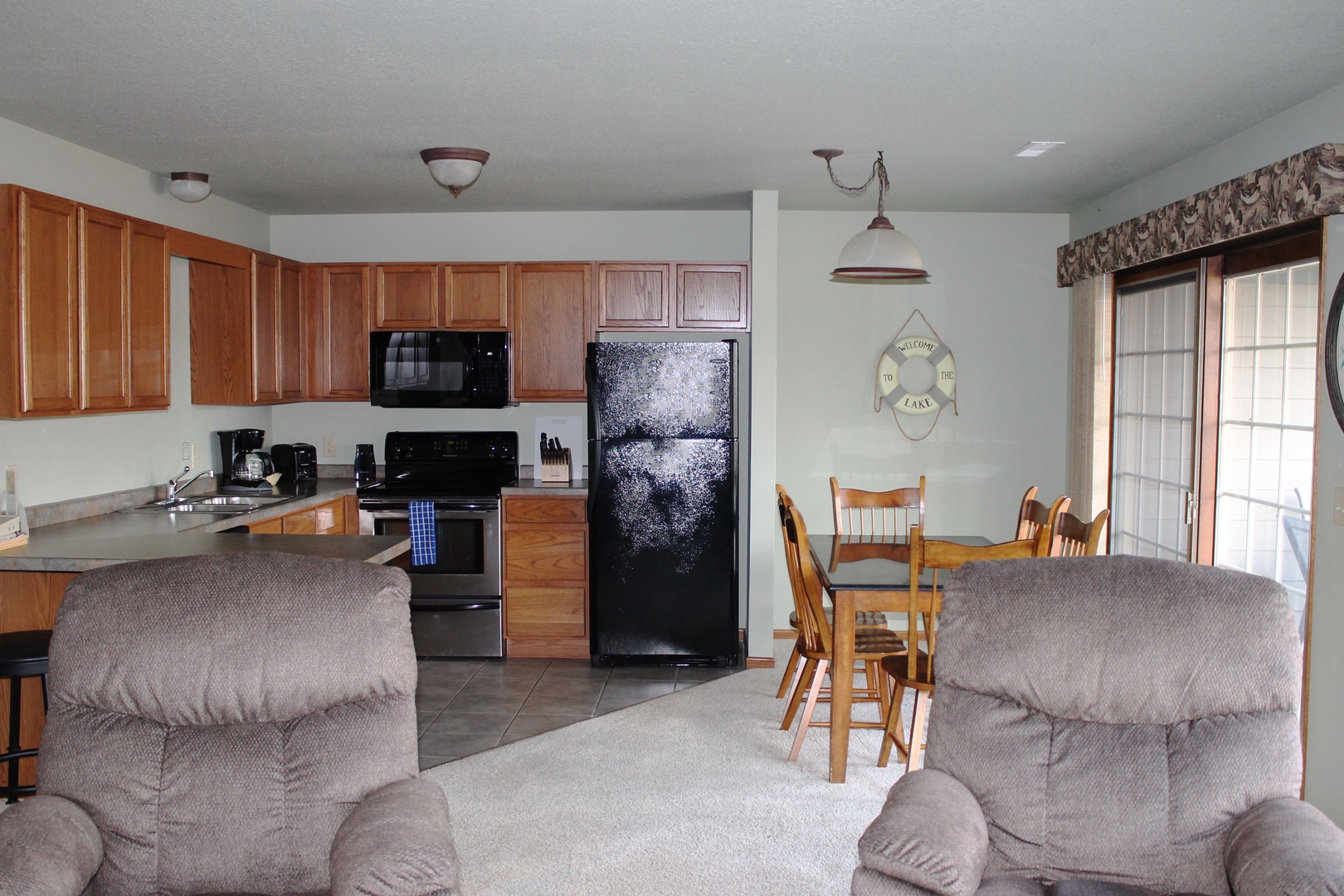 This 2-bedroom unit offers a heavily wooded view of Lynx Lake, located on the ground floor you have walk out access to the property. Featuring a full kitchen, 2 full bathrooms, and 2 bedrooms, there is space for the whole family. The master bedroom has 1 king bed and attached bathroom, 2 twins in the second as well as a queen pull out sofa in the living room. The kitchen has full sized appliances and comes fully equipped. The living room has a gas fireplace to enjoy the view with an attached patio with table, chairs, and a charcoal grill.