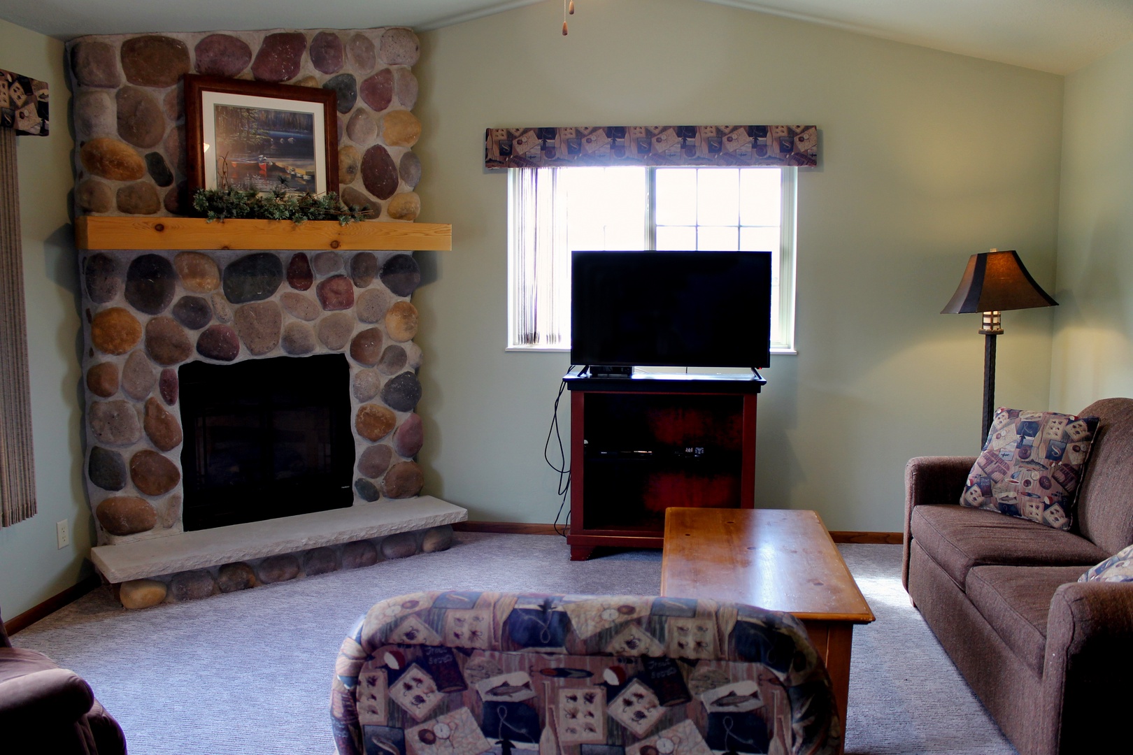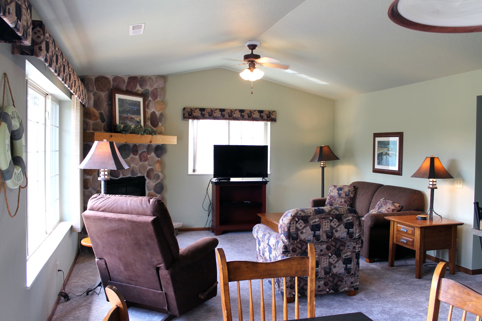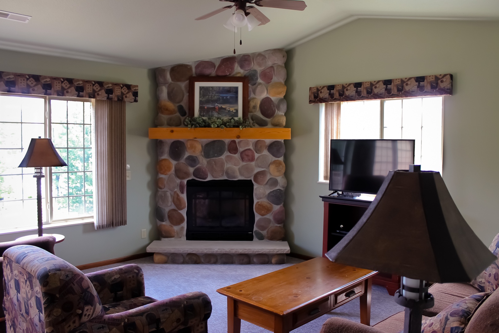 This 2-bedroom unit offers a heavily wooded view of Lynx Lake, located on the second floor you have a private balcony overlooking Lynx Lake and the property. Featuring a full kitchen, 2 full bathrooms, and 2 bedrooms, there is space for the whole family. The master bedroom has 1 king bed and attached bathroom, 2 twins in the second as well as a queen pull out sofa in the living room. The kitchen has full sized appliances and comes fully equipped. The living room has a gas fireplace to enjoy the view of the water from. Unit shares a charcoal grill on the parking lot side of building.