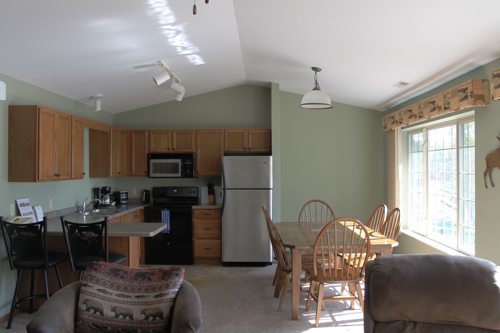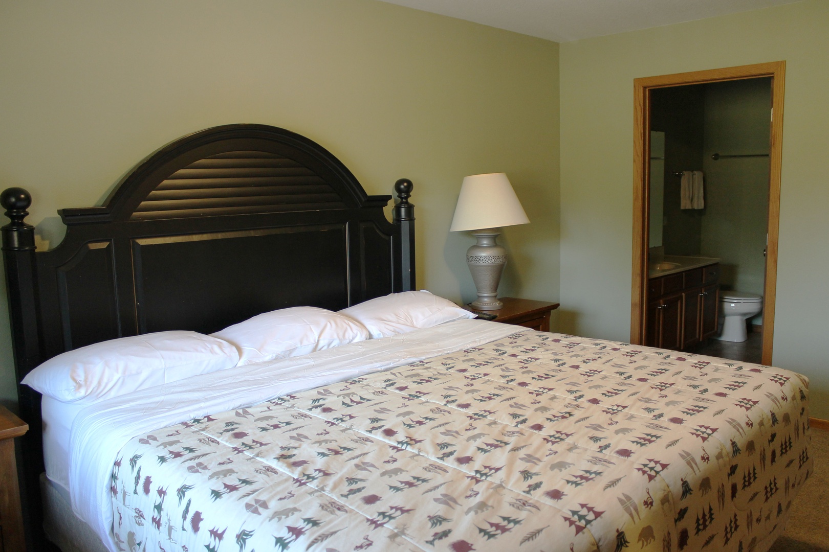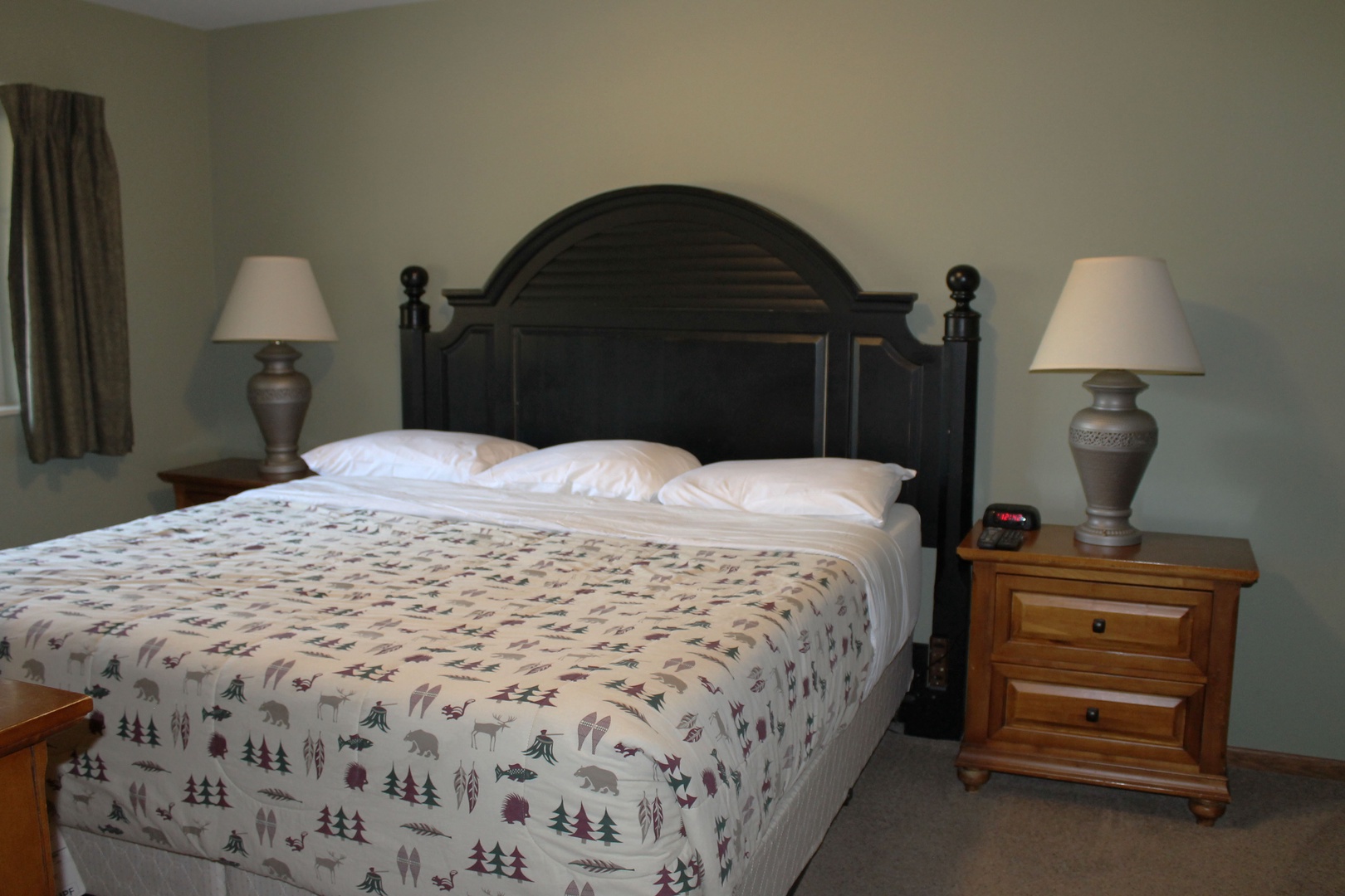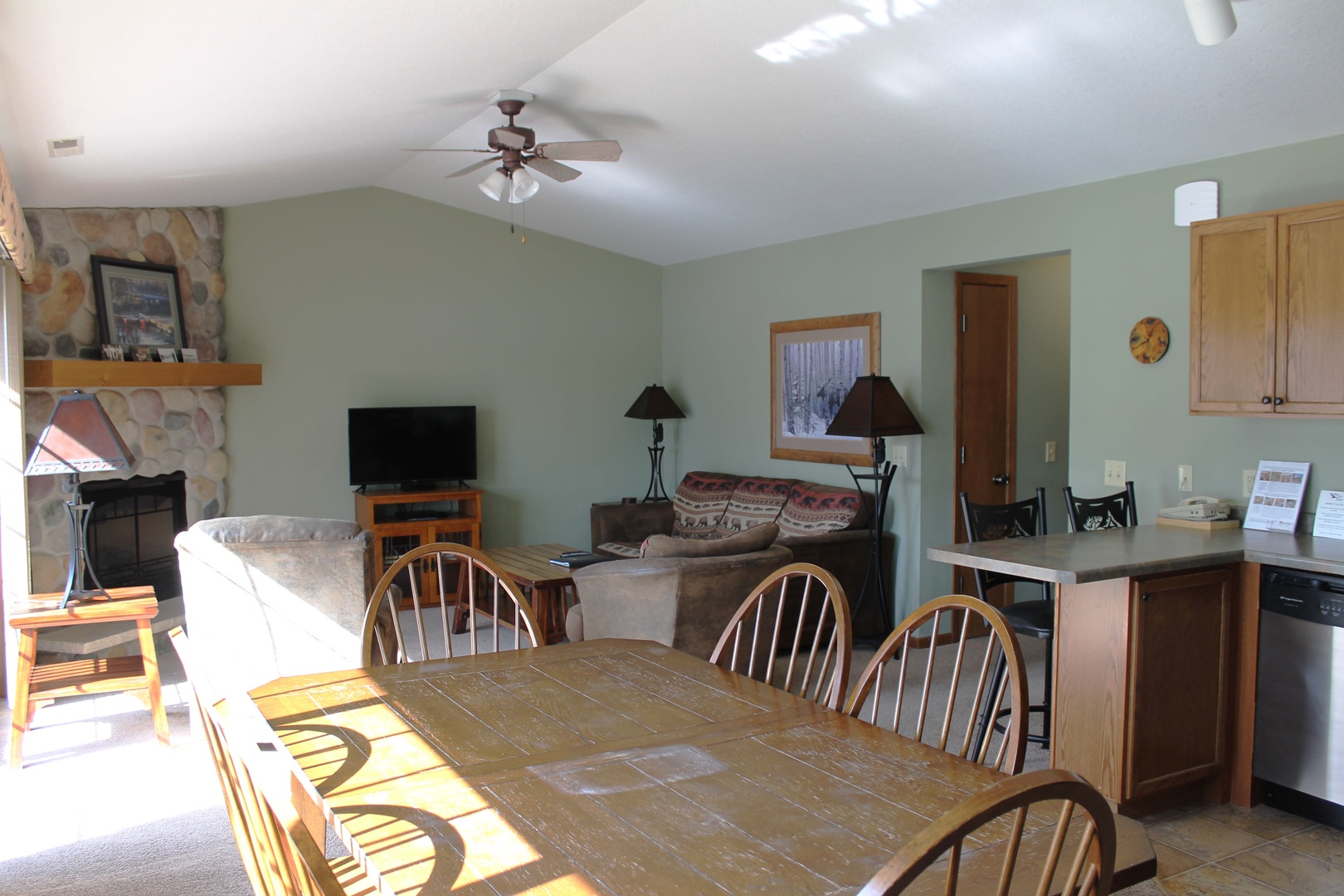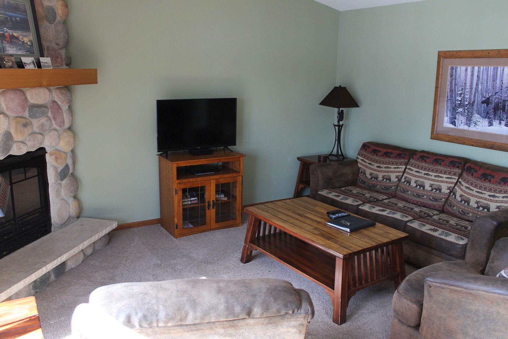 This 3-bedroom unit offers a great wooded view of Duck Lake, located on the second floor you have a great view of Duck Lake. Featuring a full kitchen, 2 full bathrooms, and 3 bedrooms. Featuring a master bedroom suite with king bed, 2 twin beds in the second bedroom, and a king bed in the third bedroom, and a queen pull-out sofa in the living room. Perfect for larger families or groups looking to stay together. The kitchen has full sized appliances and comes fully equipped. The living room has a gas fireplace to enjoy the view and a private balcony to take in the views from, this unit shares a grill on the parking lot side of the building.
