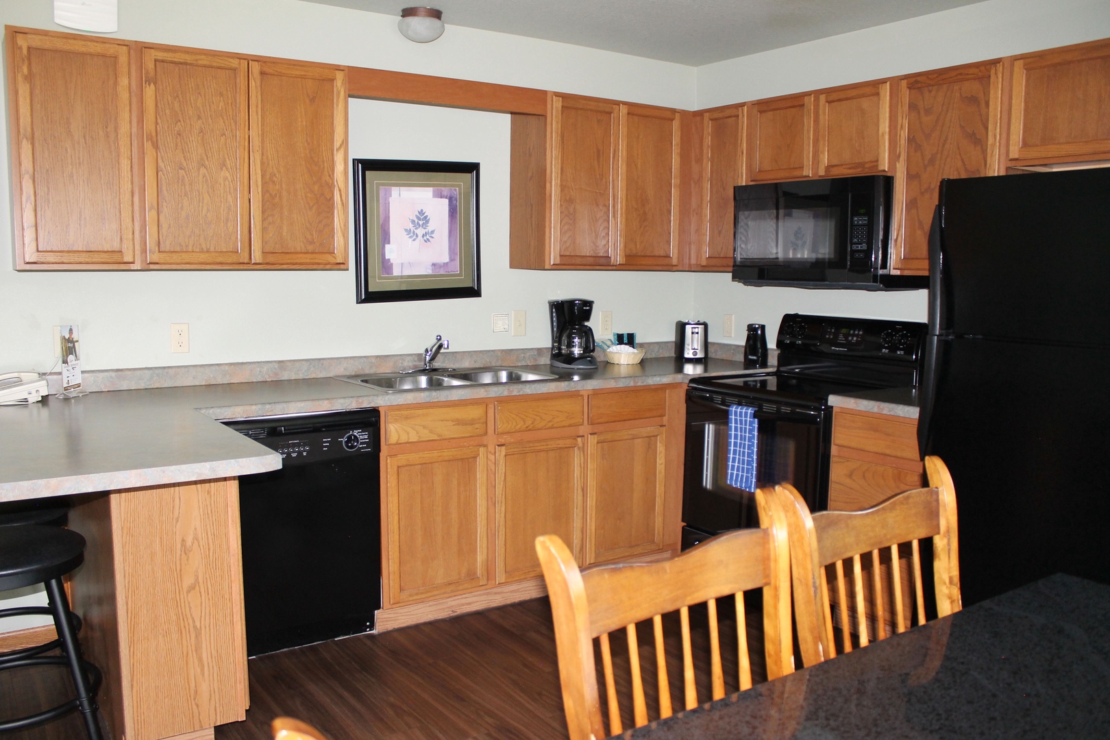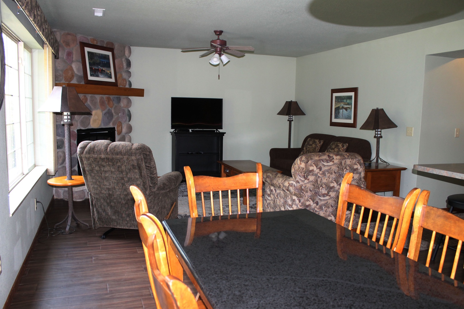 This 2-bedroom unit offers a heavily wooded view of Lynx Lake, located on the ground floor you have walk out access to the property. Featuring a full kitchen, 2 full bathrooms, and 2 bedrooms, there is space for the whole family. The master bedroom has 1 king bed and attached bathroom, 2 twins in the second as well as a queen pull out sofa in the living room. The kitchen has full sized appliances and comes fully equipped. The living room has a gas fireplace to enjoy the view with an attached patio with table, chairs, and a charcoal grill.