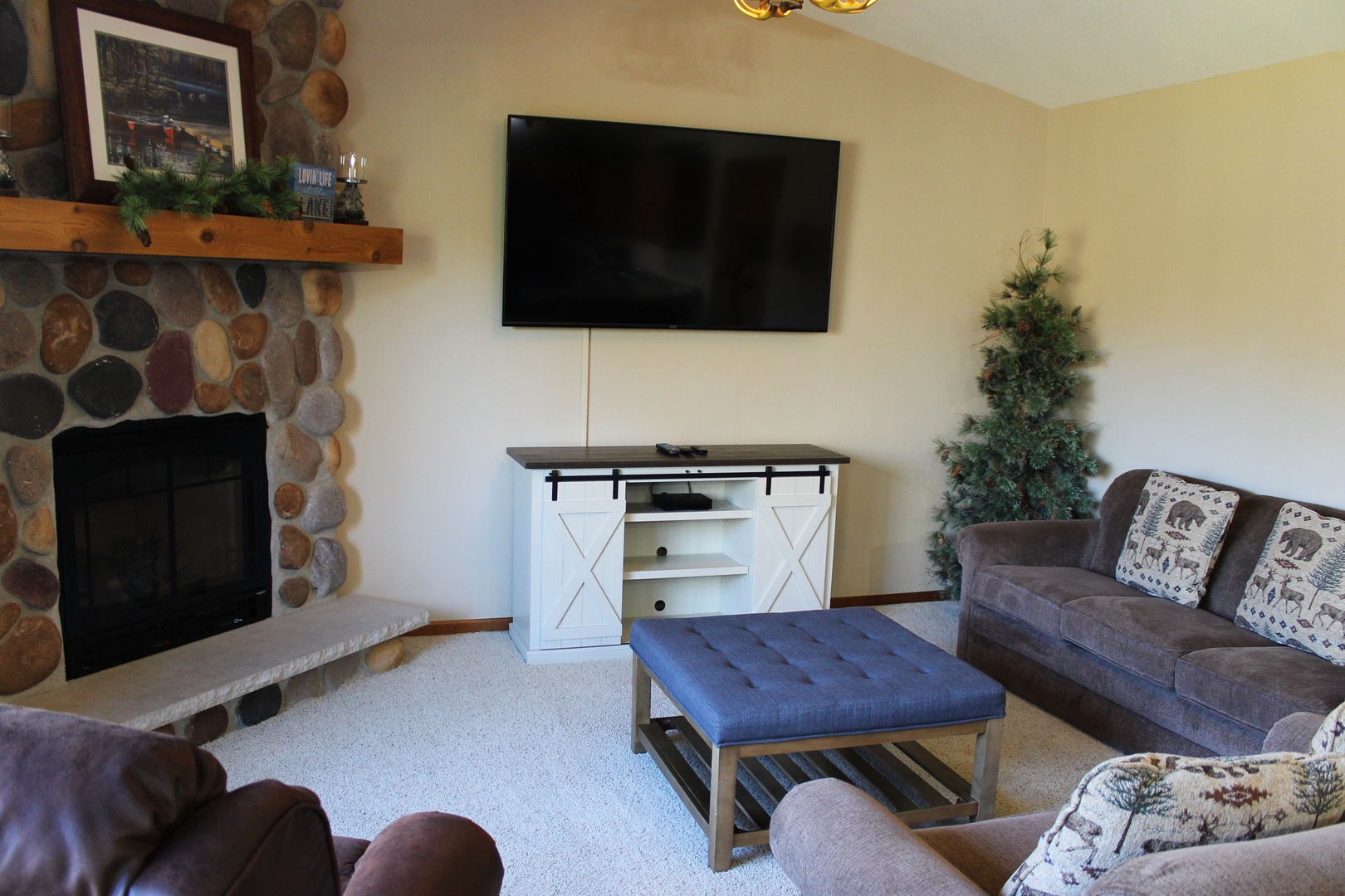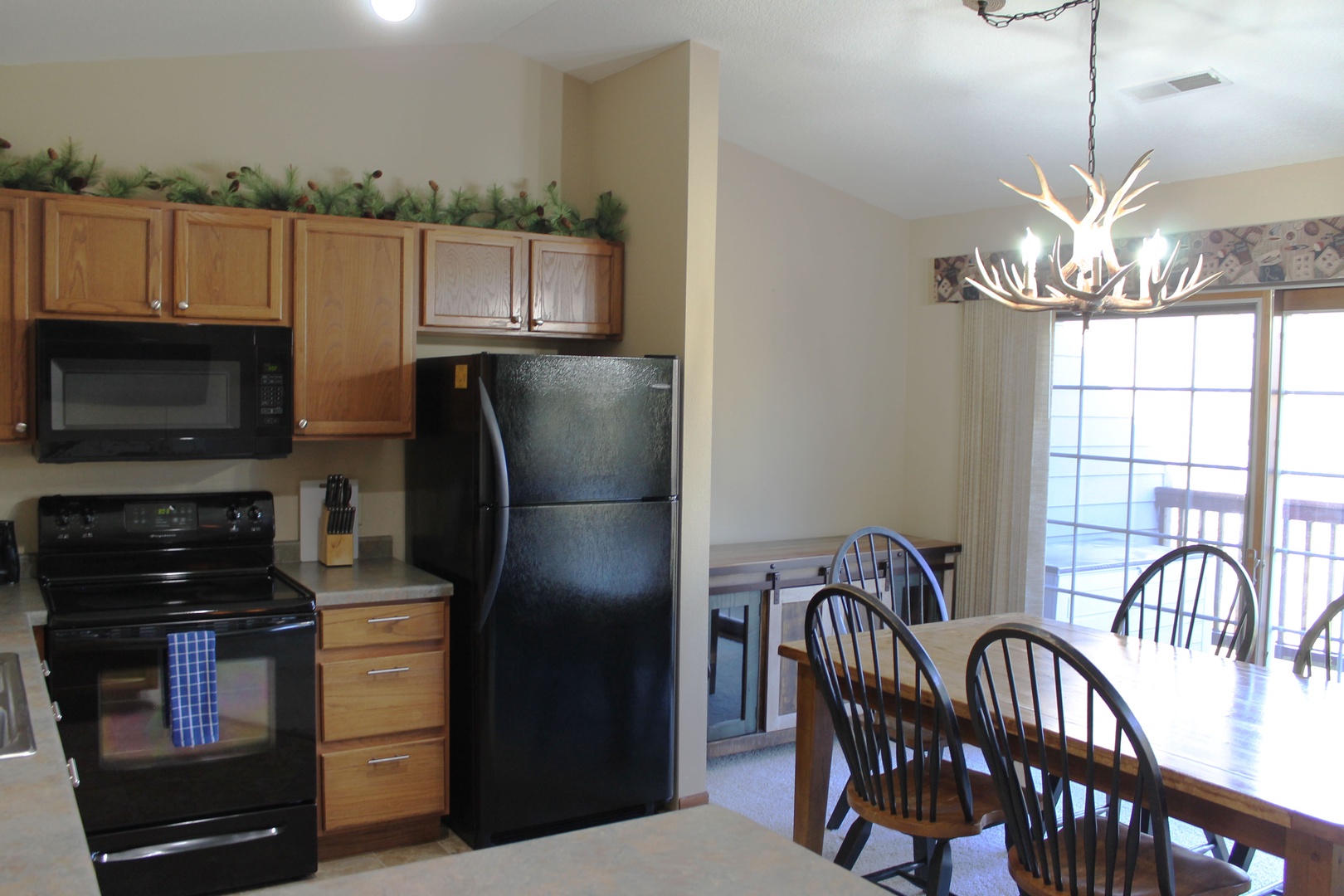 This 2-bedroom unit offers a heavily wooded view of Lynx Lake, located on the second floor you have a private balcony overlooking Lynx Lake and the property. Featuring a full kitchen, 2 full bathrooms, and 2 bedrooms, there is space for the whole family. The master bedroom has 1 king bed and attached bathroom, 2 twins in the second as well as a queen pull out sofa in the living room. The kitchen has full sized appliances and comes fully equipped. The living room has a gas fireplace to enjoy the view of the water from. Unit shares a charcoal grill on the parking lot side of building.