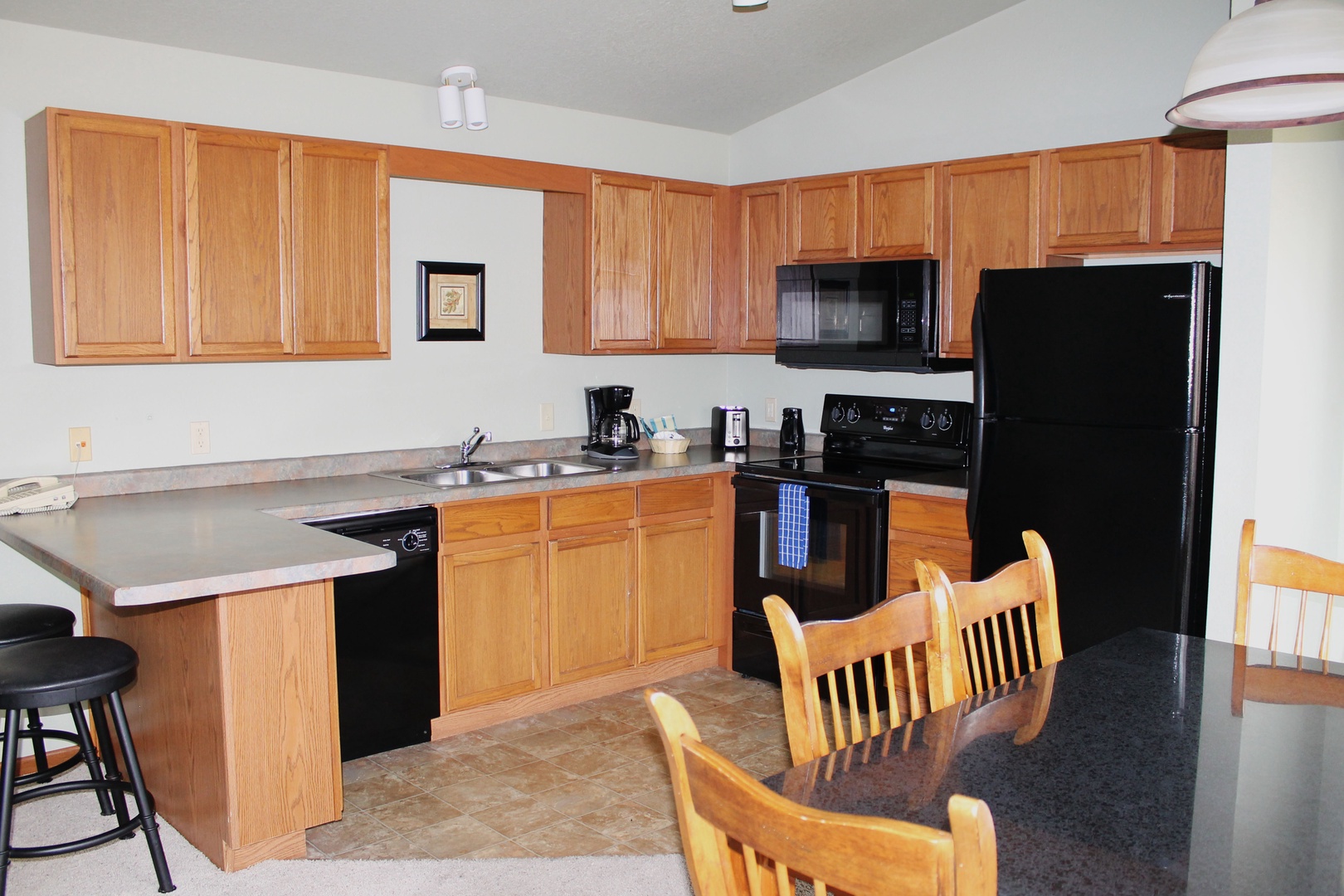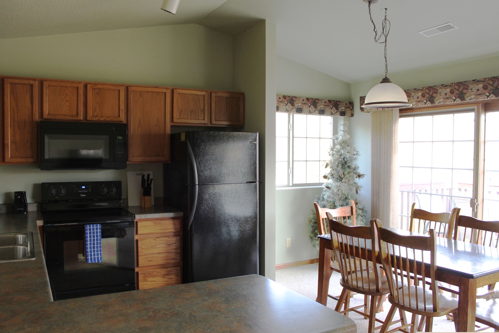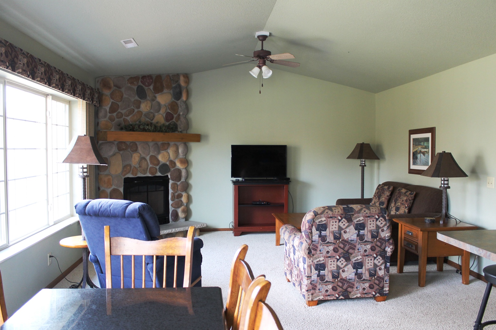 This 2-bedroom unit offers a heavily wooded view of Lynx Lake, located on the second floor you have a private balcony overlooking Lynx Lake and the property. Featuring a full kitchen, 2 full bathrooms, and 2 bedrooms, there is space for the whole family. The master bedroom has 1 king bed and attached bathroom, 2 twins in the second as well as a queen pull out sofa in the living room. The kitchen has full sized appliances and comes fully equipped. The living room has a gas fireplace to enjoy the view of the water from. Unit shares a charcoal grill on the parking lot side of building.
