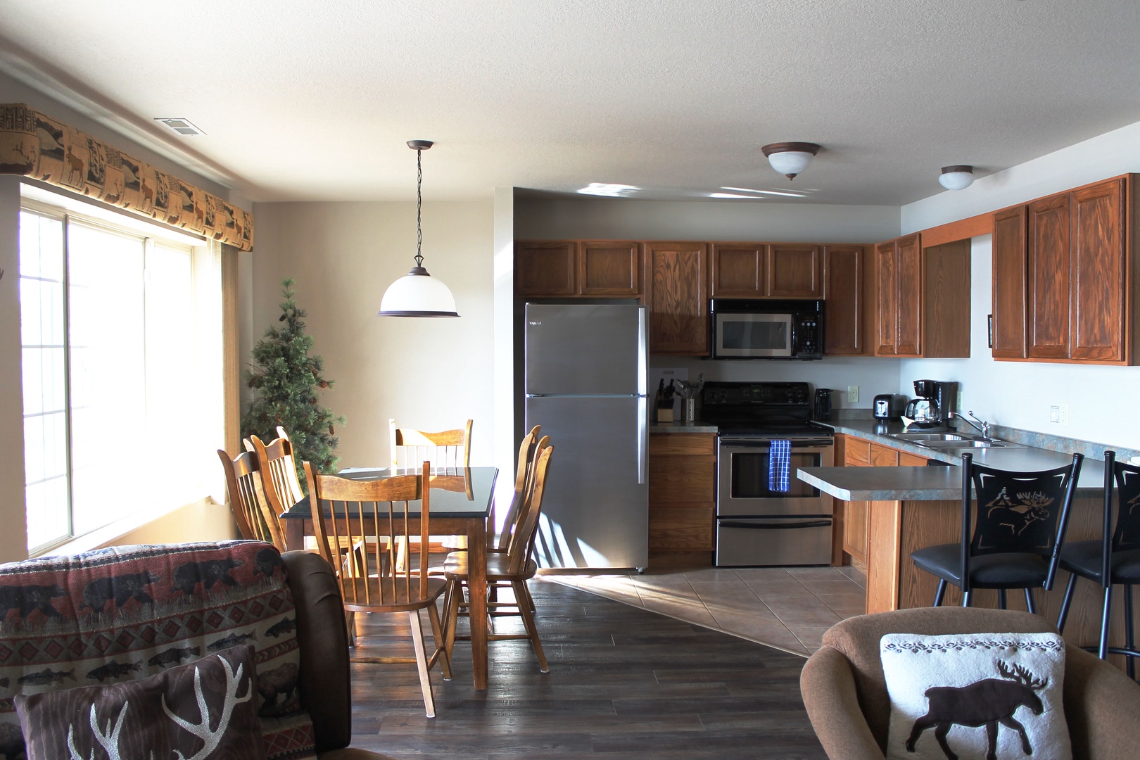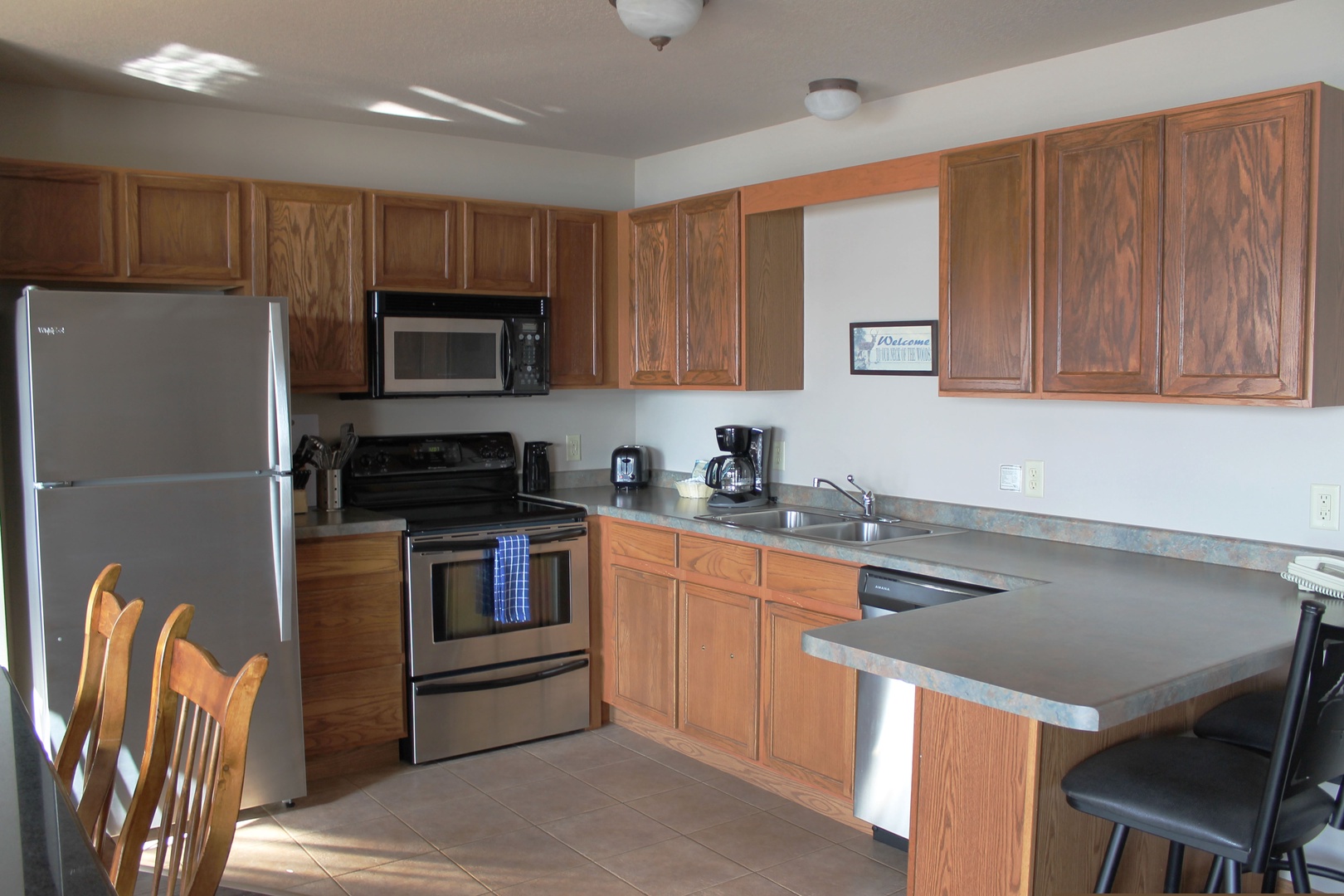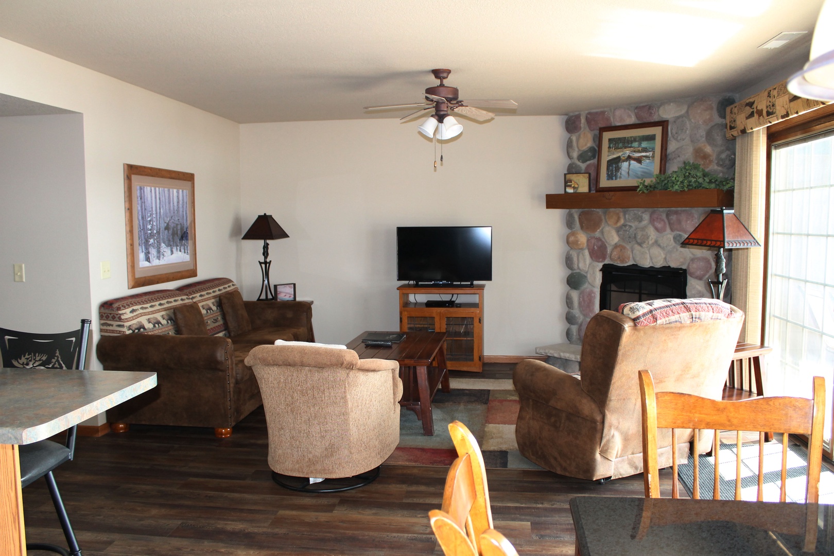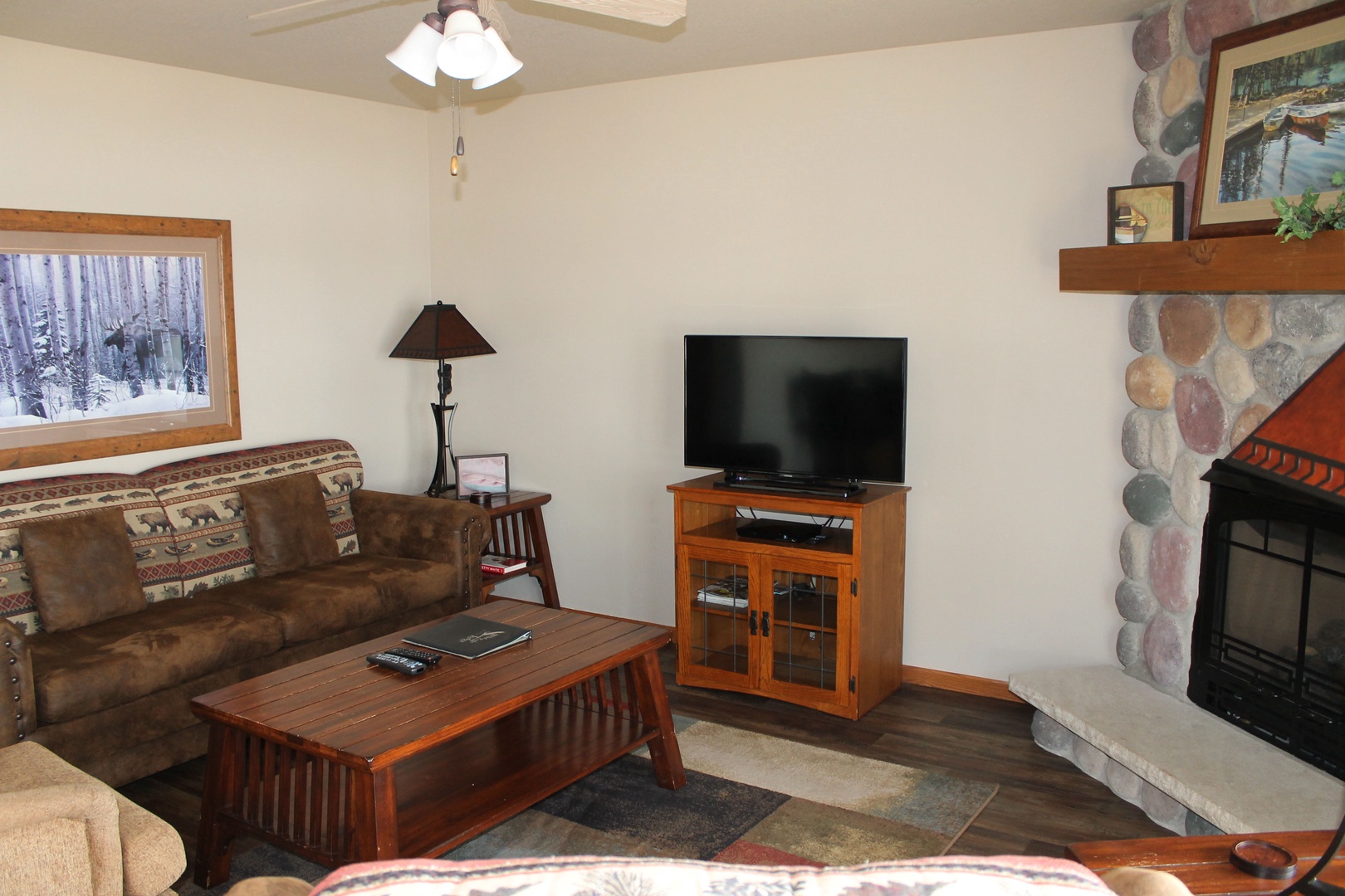 This 1-bedroom unit offers a great open view of Duck Lake, located on the ground floor you have walk out access to the lakefront of the property. Featuring a full kitchen, 2 full bathrooms, and a master bedroom suite, Perfect for a weekend away or a small family. The master bedroom has 1 king bed and attached bathroom, and a queen pull out sofa in the living room. The kitchen has full sized appliances and comes fully equipped. The living room has a gas fireplace to enjoy the view with an attached patio with table, chairs, and a charcoal grill.