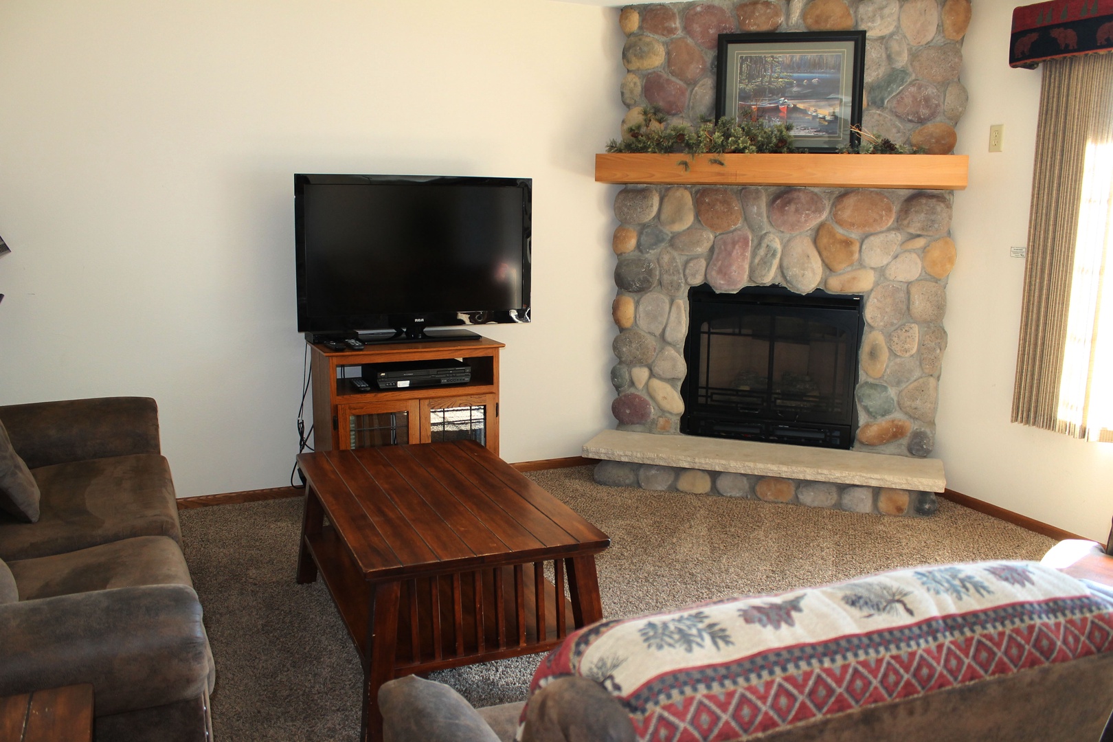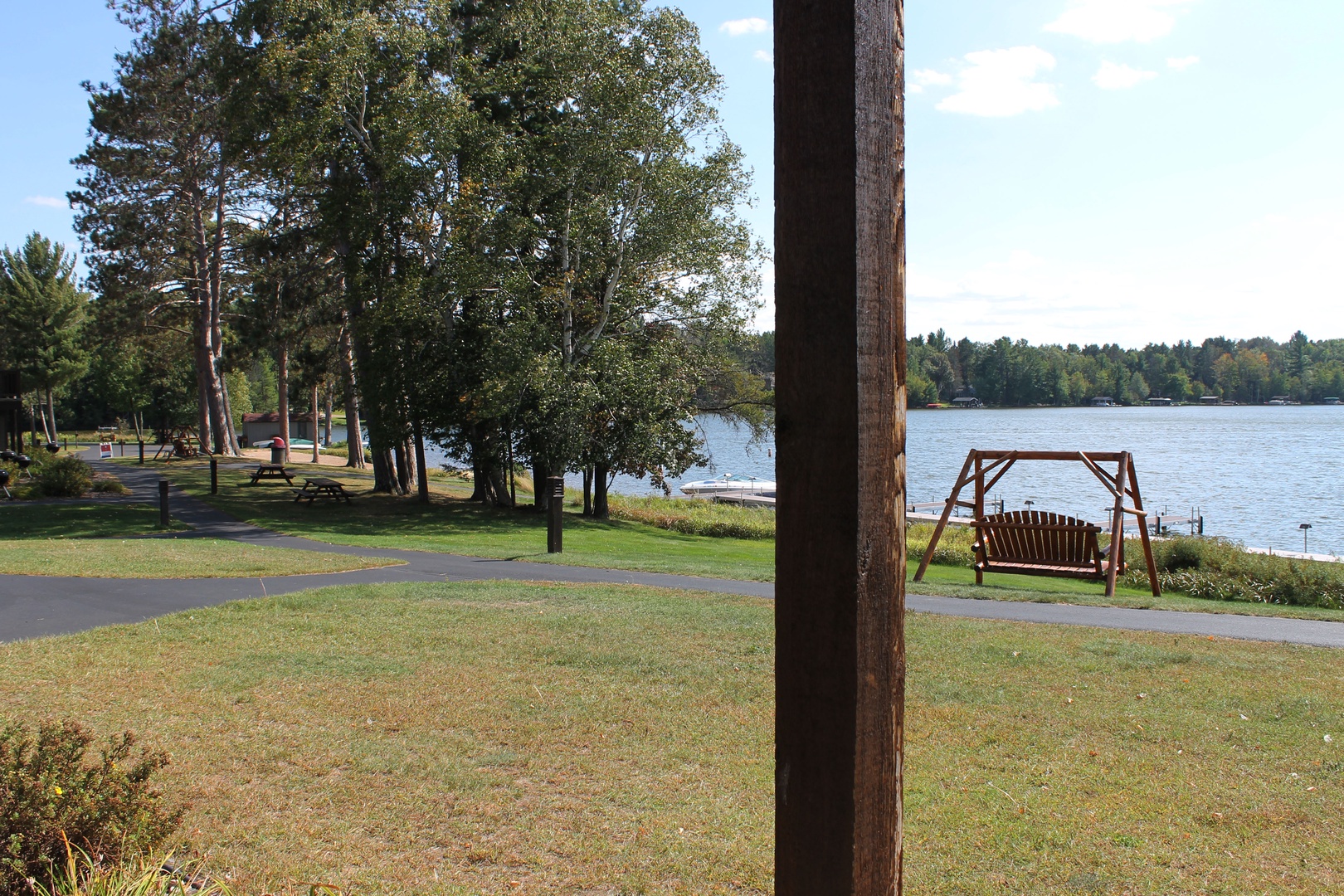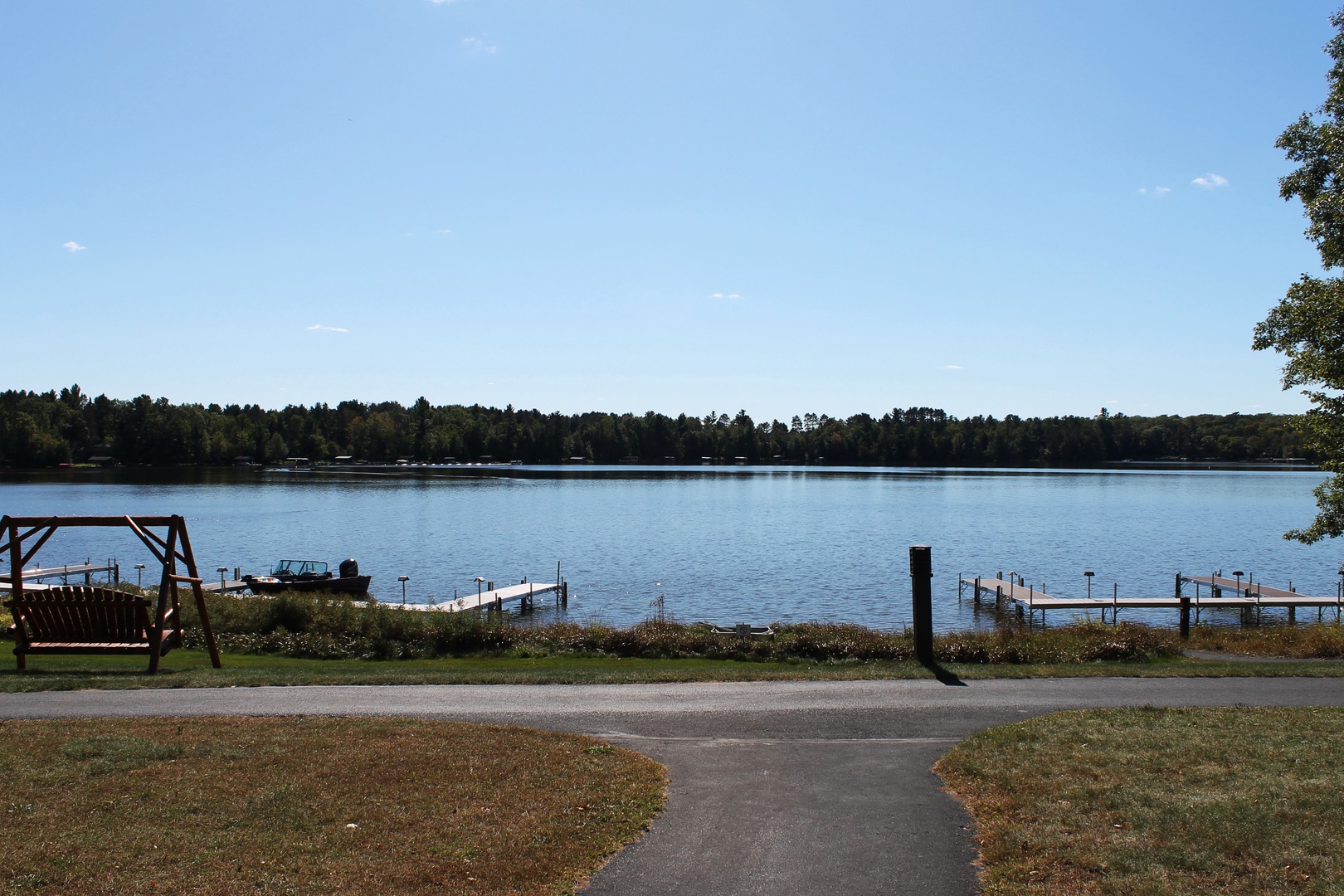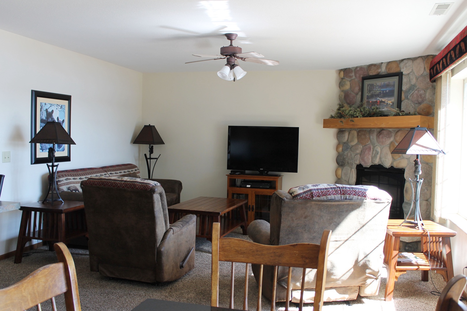 This 2-bedroom unit offers a great open view of Duck Lake, located on the ground floor you have walk out access to the lakefront of the property. Featuring a full kitchen, 2 full bathrooms, and 2 bedrooms, there is space for the whole family. The master bedroom has 1 king bed and attached bathroom, 2 twins in the second as well as a queen pull out sofa in the living room. The kitchen has full sized appliances and comes fully equipped. The living room has a gas fireplace to enjoy the view by with an attached patio with table, chairs, and a charcoal grill.