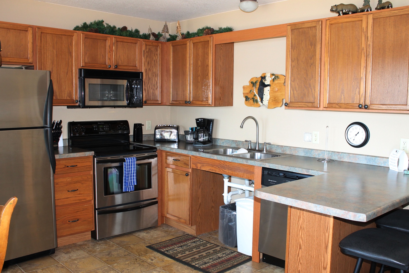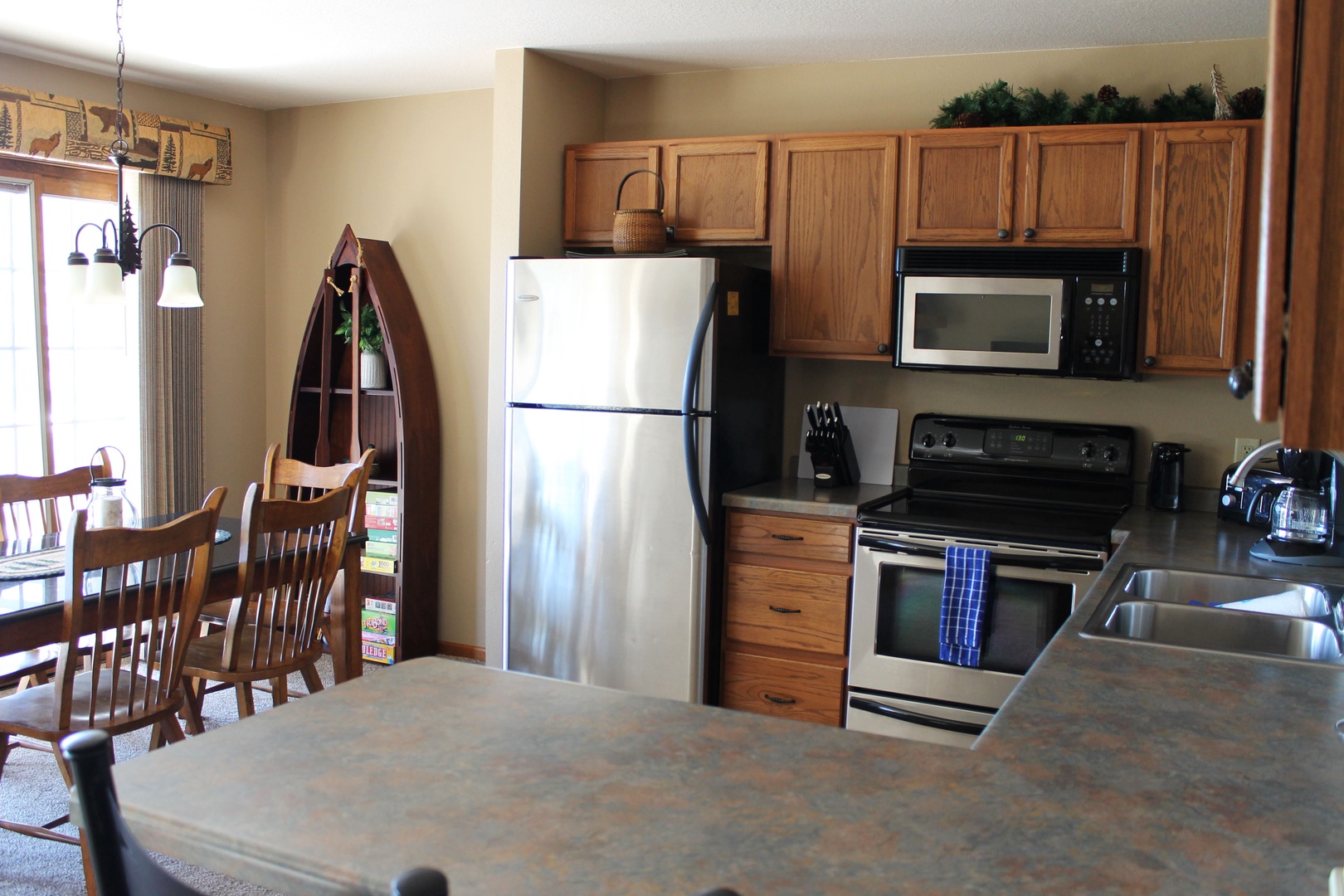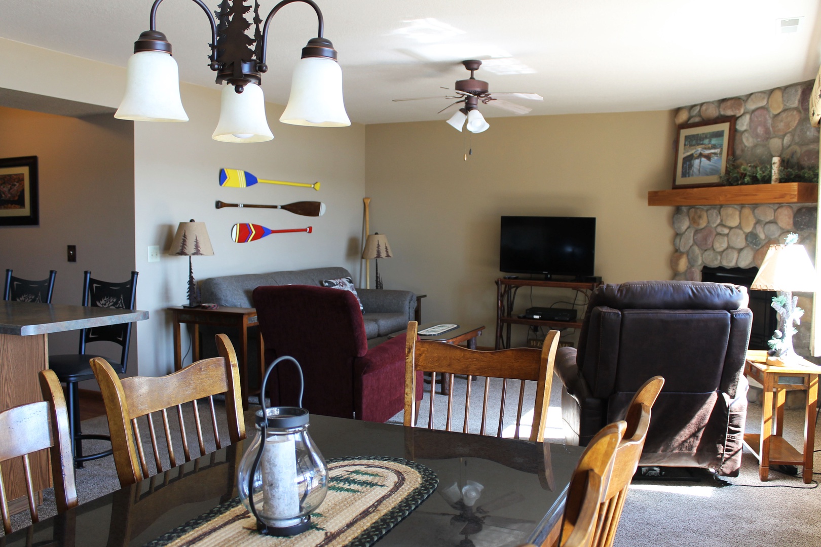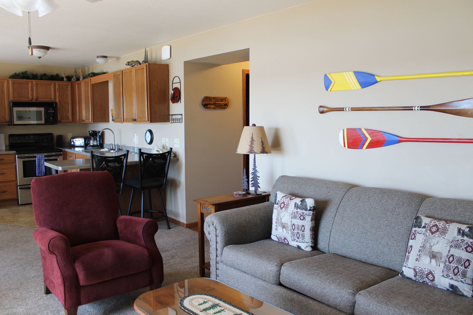 This 2-bedroom unit offers a great open view of Duck Lake, located on the ground floor you have walk out access to the lakefront of the property. Featuring a full kitchen, 2 full bathrooms, and 2 bedrooms, there is space for the whole family. The master bedroom has 1 king bed and attached bathroom, 2 twins in the second as well as a queen pull out sofa in the living room. The kitchen has full sized appliances and comes fully equipped. The living room has a gas fireplace to enjoy the view by with an attached patio with table, chairs, and a charcoal grill. This unit has an accessible floorplan, with grab bars in the bathrooms, open cabinets and sink area.