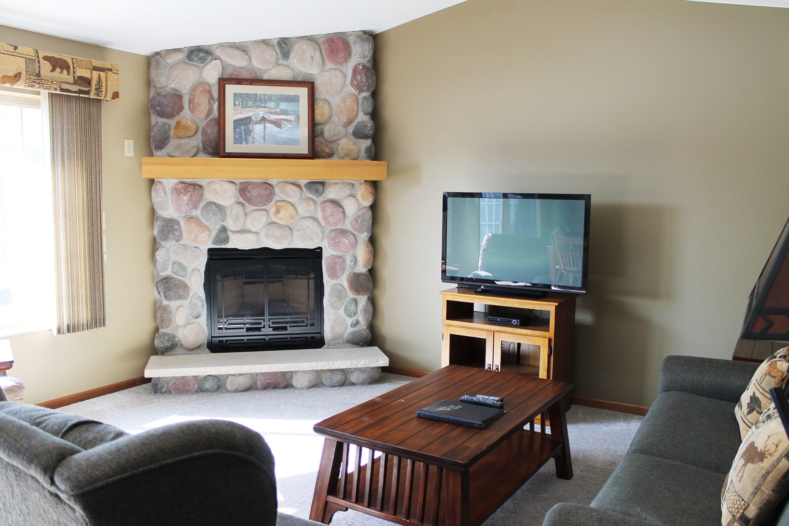 This 2-bedroom unit offers a great open view of Duck Lake, located on the second floor you have a private balcony overlooking Duck Lake and the property. Featuring a full kitchen, 2 full bathrooms, and 2 bedrooms, there is space for the whole family. The master bedroom has 1 king bed and attached bathroom, 2 twins in the second as well as a queen pull out sofa in the living room. The kitchen has full sized appliances and comes fully equipped. The living room has a gas fireplace to enjoy the view of the water from. Unit shares a charcoal grill on the parking lot side of building.
