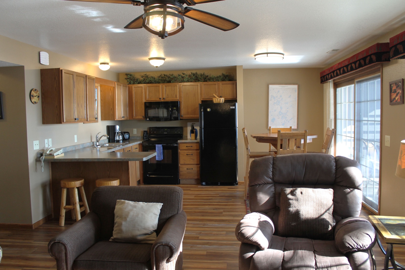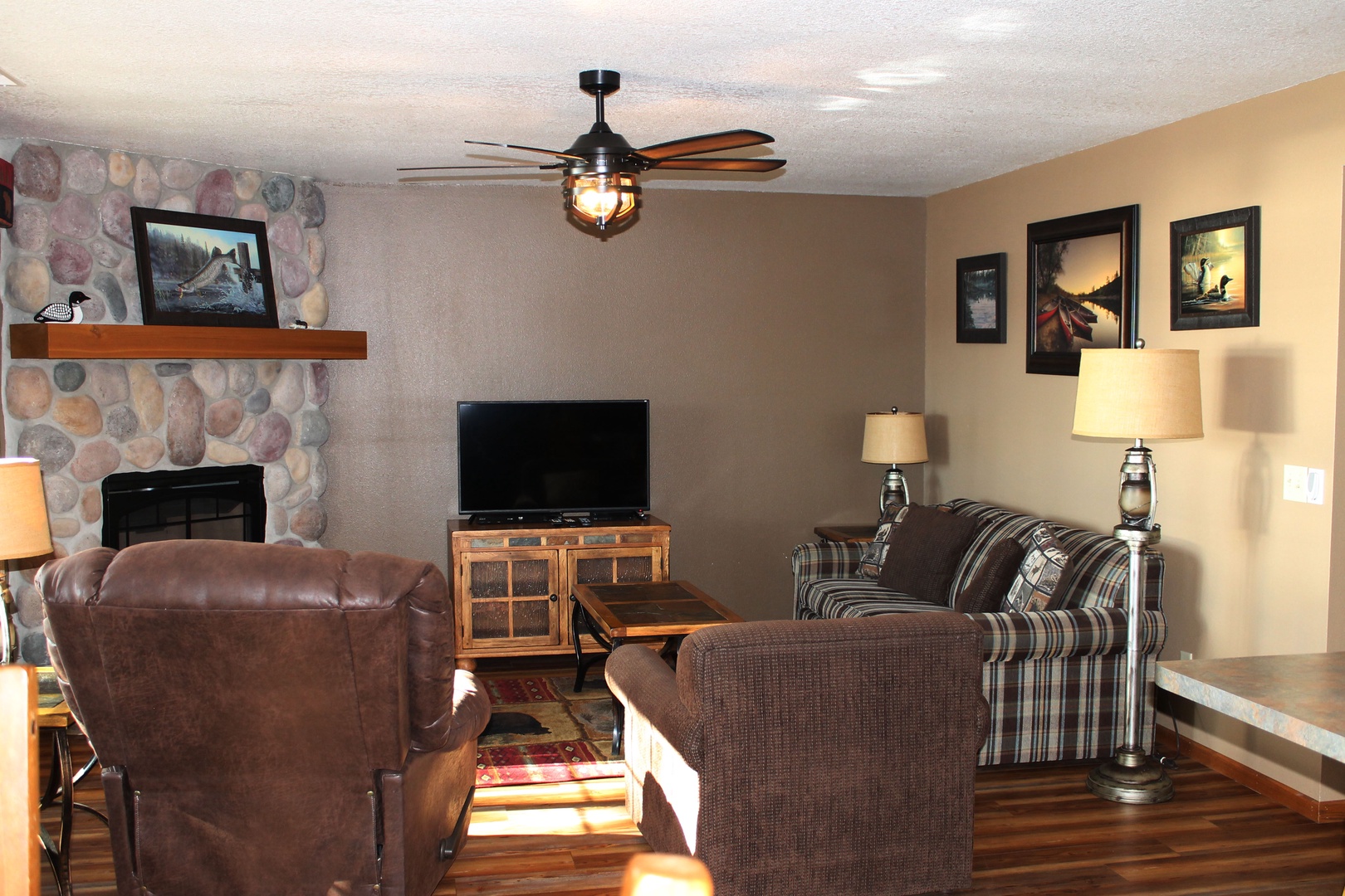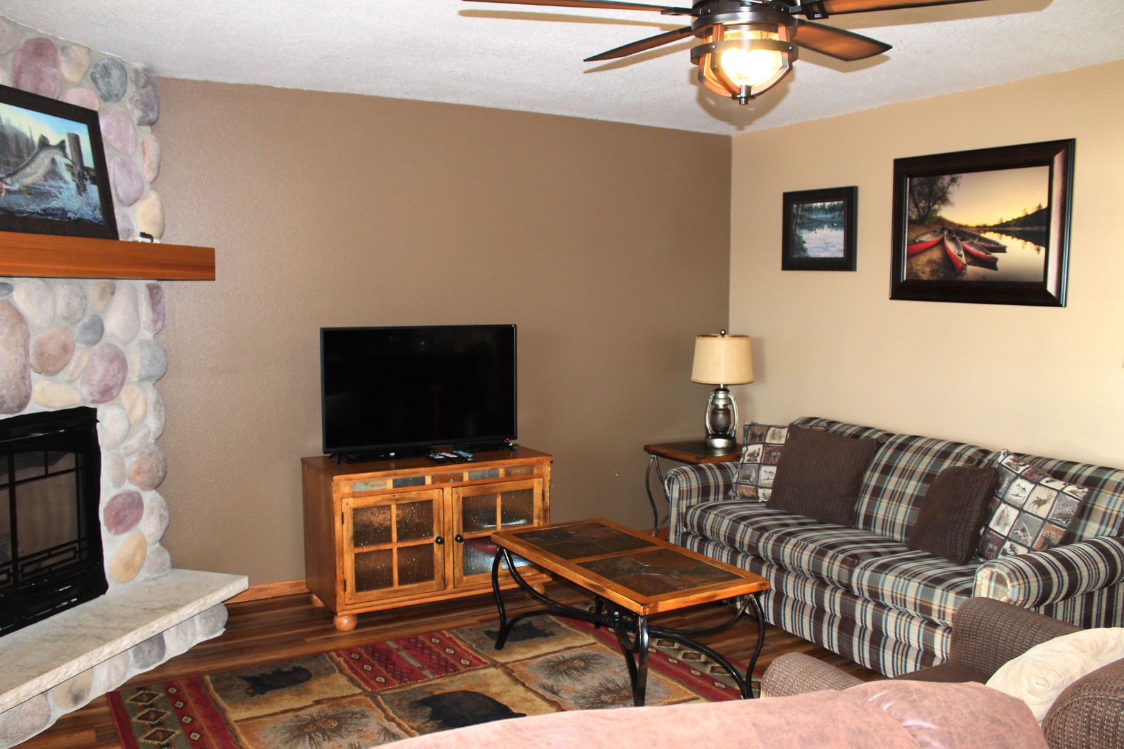 This 2-bedroom unit offers a great open view of Duck Lake, located on the ground floor by the beach you have walk out access to the lakefront of the property. Featuring a full kitchen, 2 full bathrooms, and 2 bedrooms, there is space for the whole family. The master bedroom has 1 king bed and attached bathroom, 2 twins in the second as well as a queen pull out sofa in the living room. The kitchen has full sized appliances and comes fully equipped. The living room has a gas fireplace to enjoy the view by with an attached patio with table, chairs, and a charcoal grill.