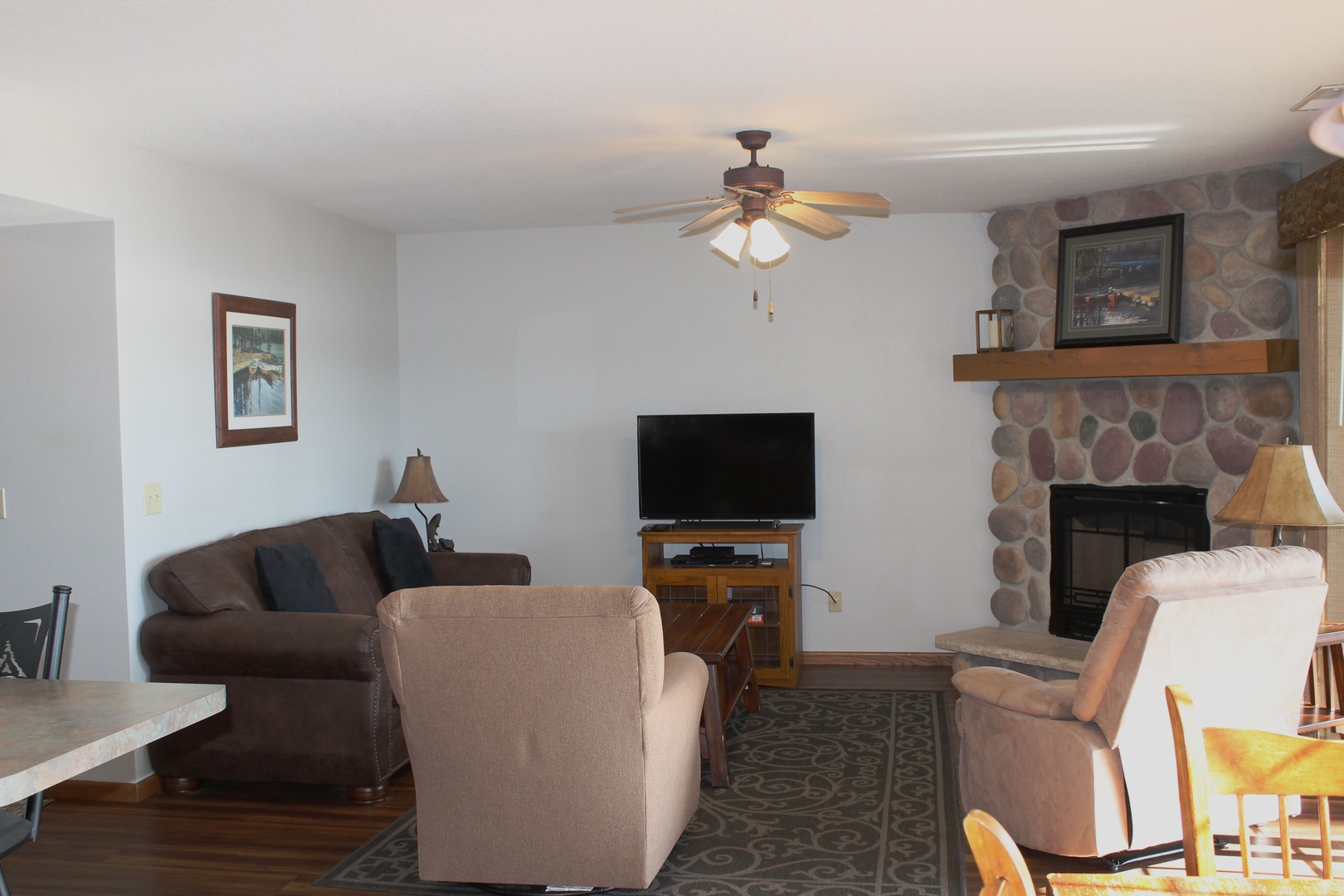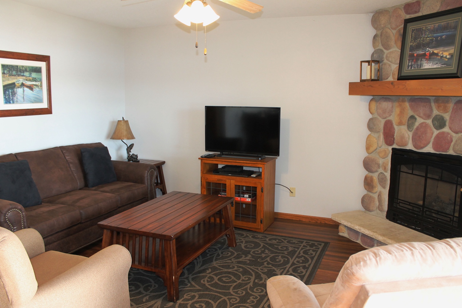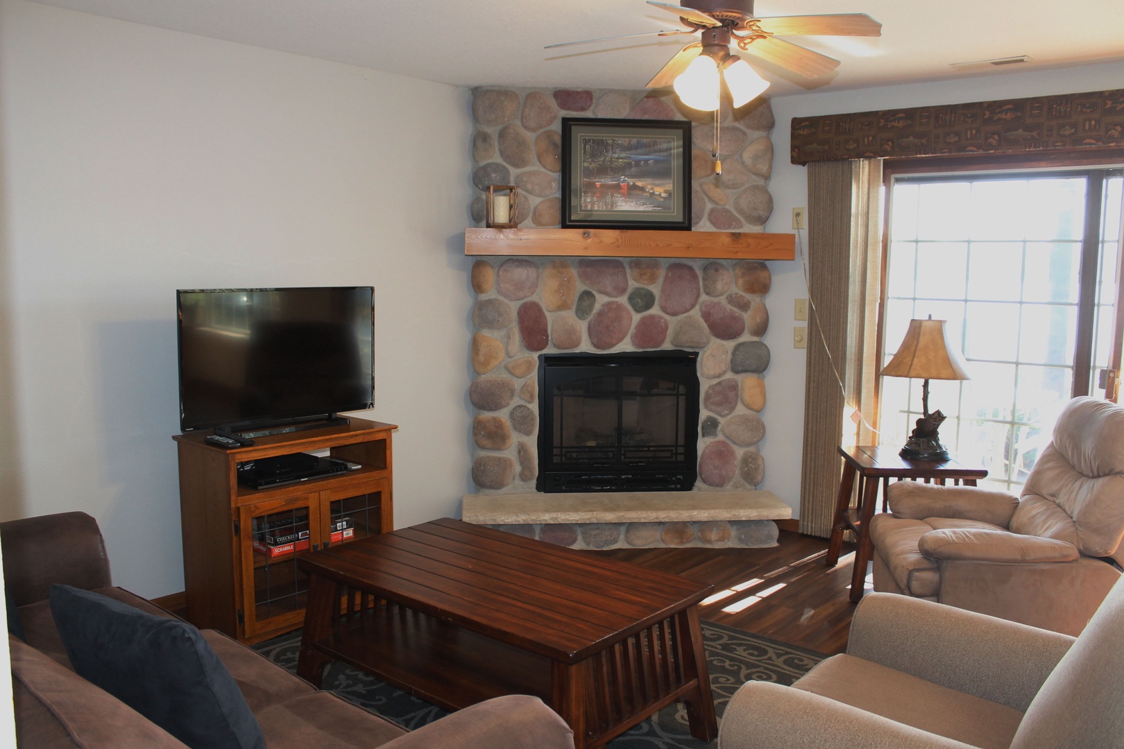 This 1-bedroom unit offers a great open view of Duck Lake, located on the ground floor by the beach you have walk out access to the lakefront of the property. Featuring a full kitchen, 2 full bathrooms, and a master bedroom suite, Perfect for a weekend away or a small family. The master bedroom has 1 king bed and attached bathroom, and a queen pull out sofa in the living room. The kitchen has full sized appliances and comes fully equipped. The living room has a gas fireplace to enjoy the view with an attached patio with table, chairs, and a charcoal grill.