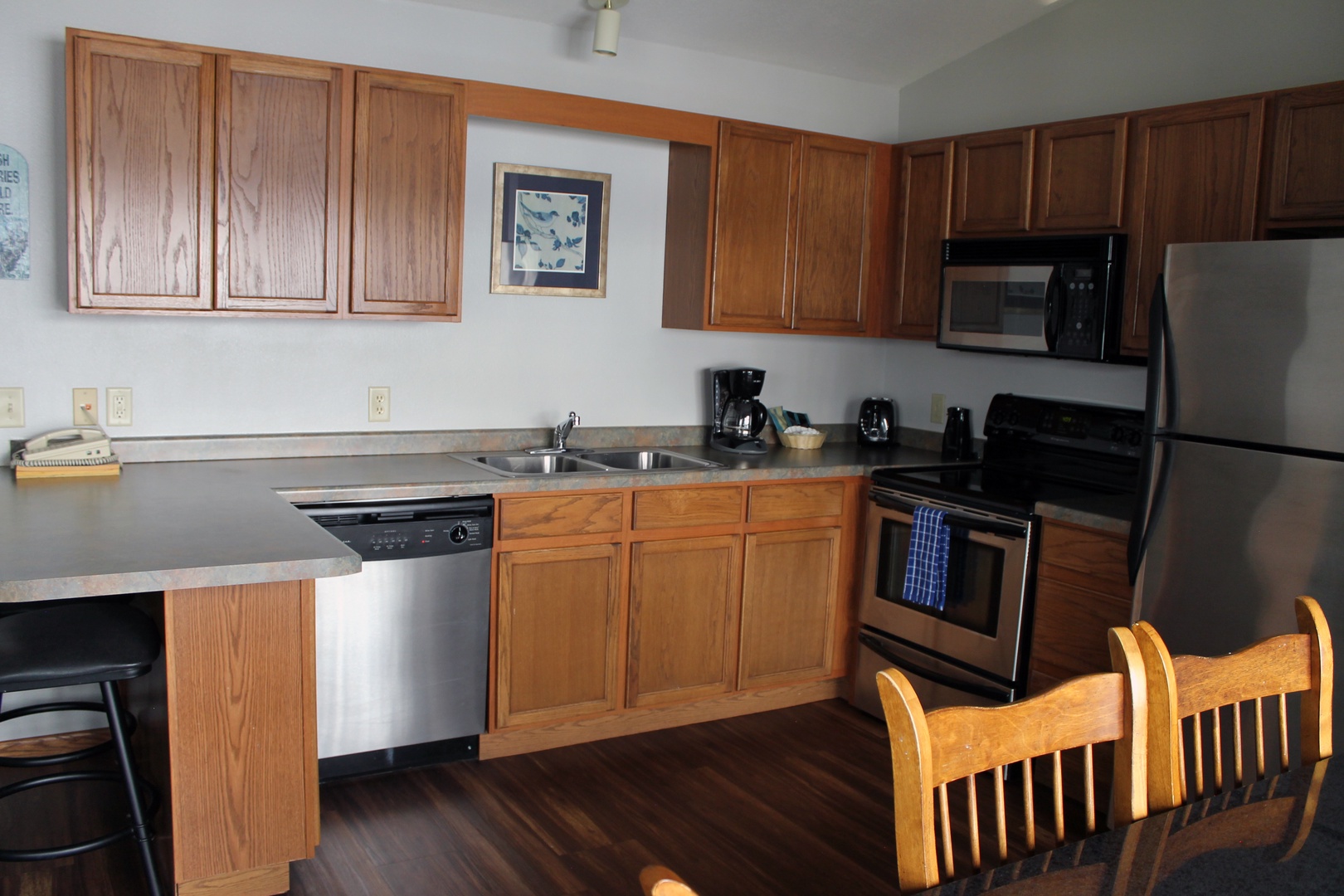 This 2-bedroom unit offers a great open view of Duck Lake, located on the second floor overlooking the beach you have a private balcony overlooking Duck Lake and the property. Featuring a full kitchen, 2 full bathrooms, and 2 bedrooms, there is space for the whole family. The master bedroom has 1 king bed and attached bathroom, 2 twins in the second as well as a queen pull out sofa in the living room. The kitchen has full sized appliances and comes fully equipped. The living room has a gas fireplace to enjoy the view of the water from. Unit shares a charcoal grill on the parking lot side of building.
