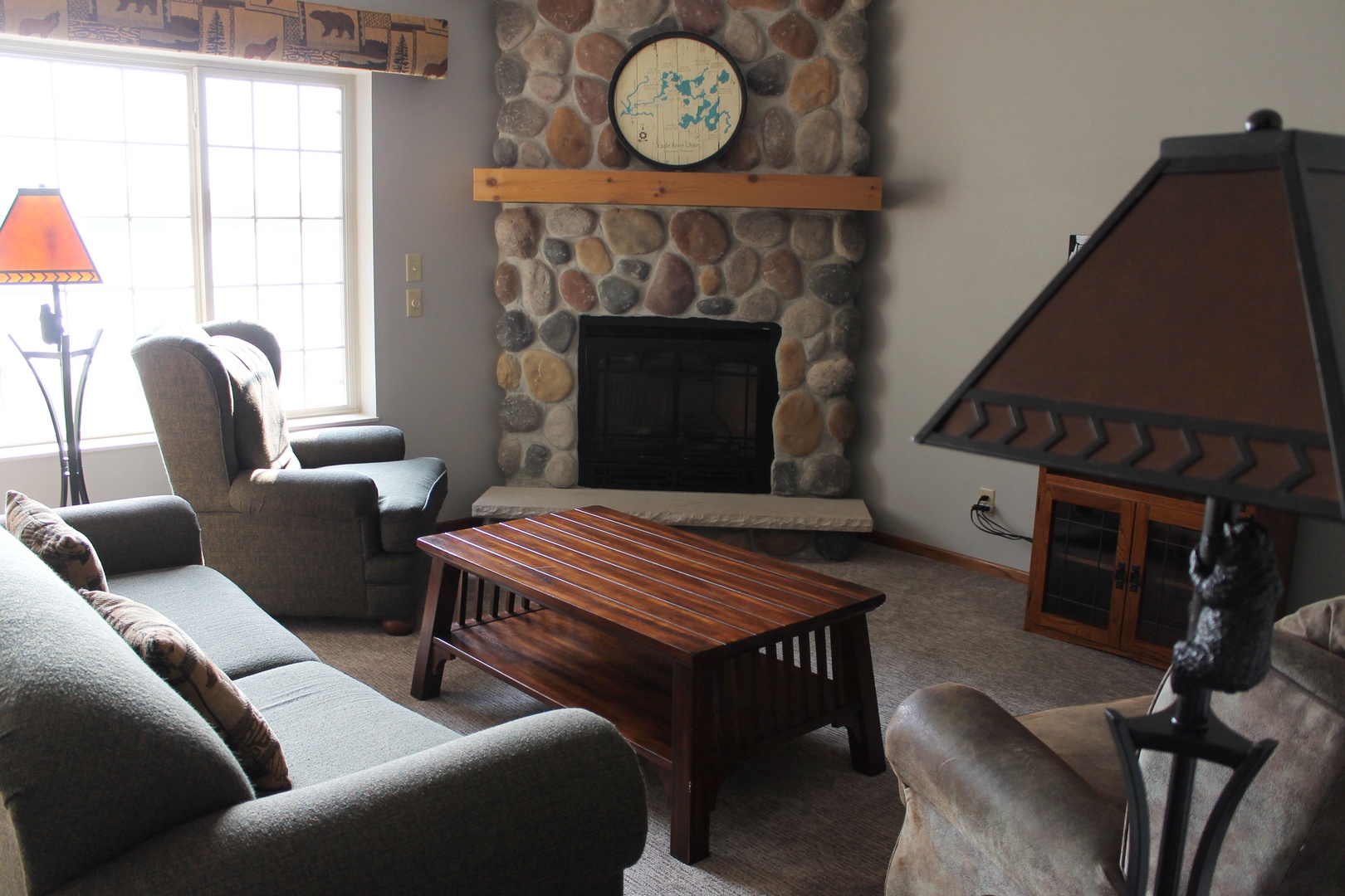 This 2-bedroom unit offers a great view of Duck Lake, located on the second floor overlooking the beach area you have a private balcony overlooking Duck Lake and the property. Featuring a full kitchen, 2 full bathrooms, and 2 bedrooms, there is space for the whole family. The master bedroom has 1 king bed and attached bathroom, 2 twins in the second as well as a queen pull out sofa in the living room. The kitchen has full sized appliances and comes fully equipped. The living room has a gas fireplace to enjoy the view of the water from. Unit shares a charcoal grill on the parking lot side of building.